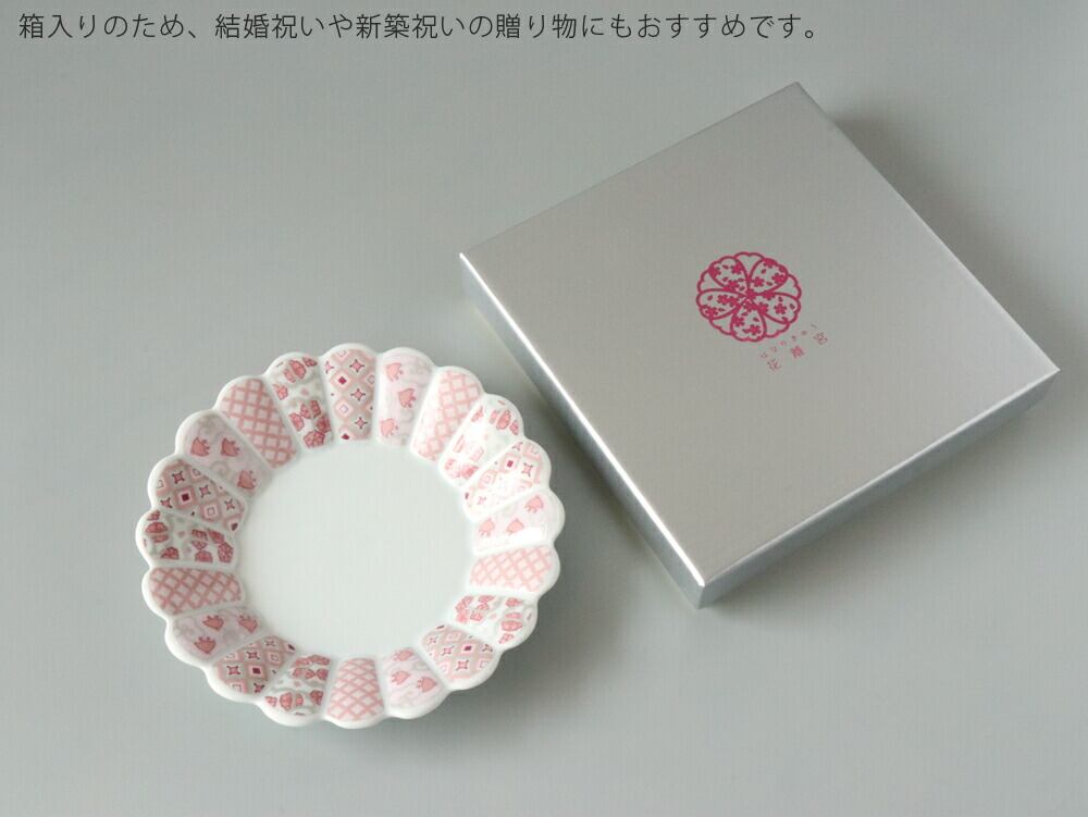 こちらは、ハレの日やお正月の席にぴったりの「花離宮」の丸皿です。