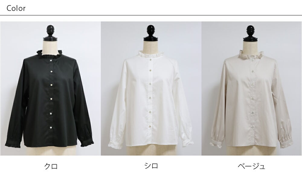 一枚でさらりと着るのはもちろん、ニットとのレイヤードで首元や袖口からフリルをのぞかせるスタイルもおすすめ。デニムと合わせてカジュアルに、ジャケットと合わせてきちんと感を演出するなど、幅広いコーディネートに活躍します。