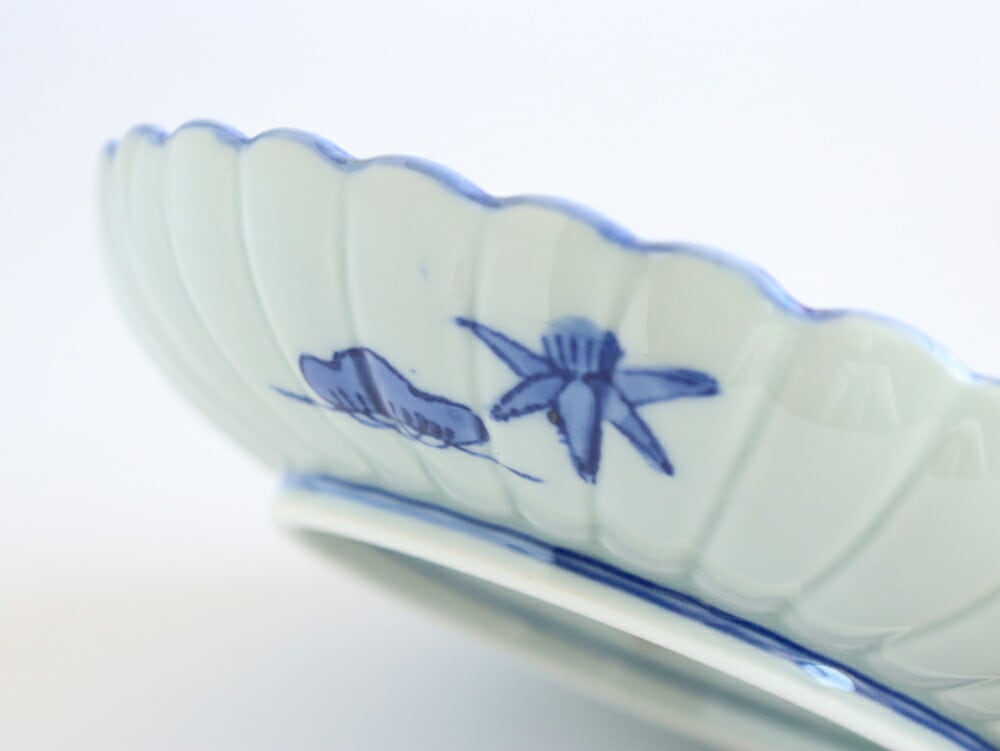 伊万里(古伊万里)焼は大きく分けると白磁、染付(白磁に藍色の絵の具だけで絵を描いたもの)、色絵(白磁や染付に赤や金などの上絵を描いたもの)、青磁(青緑いろの釉薬をかけたもの)などの種類に分けられます。