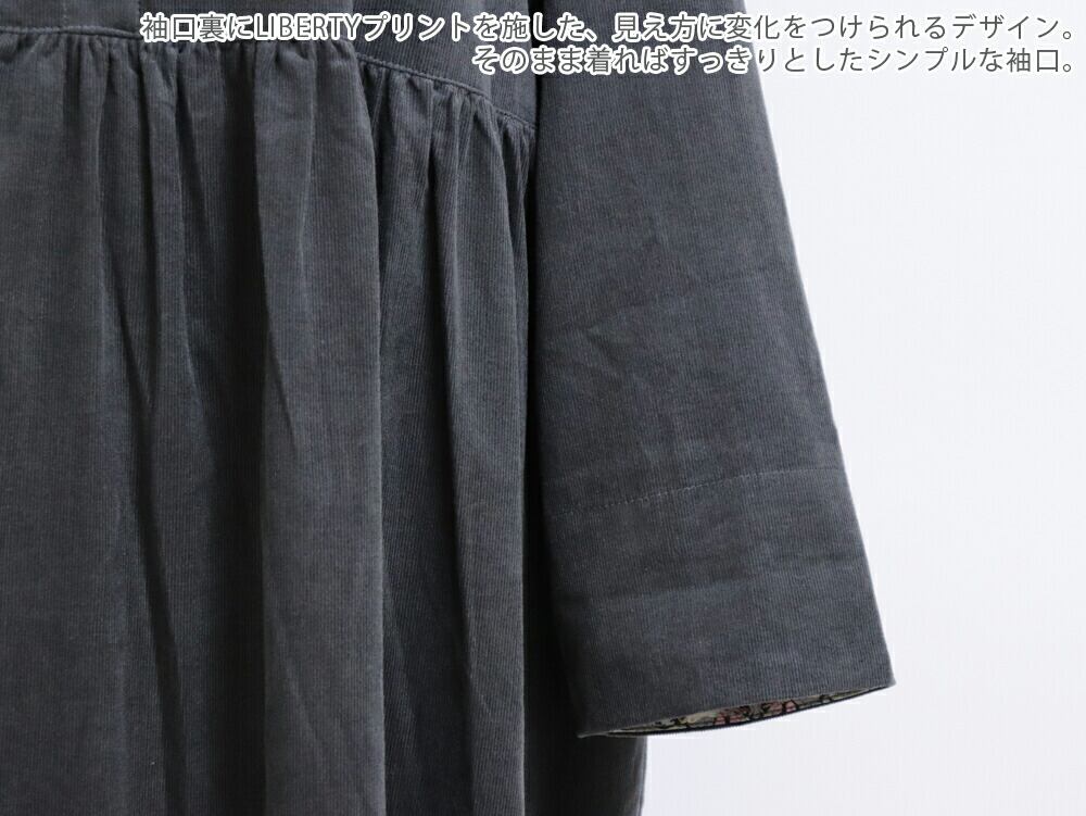 SOSOTTO(ソソット)細畝コーデュロイ 袖裏LIBERTY ギャザーワンピース