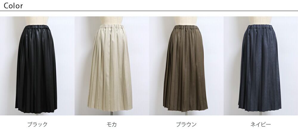 レザー調の光沢とほどよいシワ感がカッコいい!歩くたびに上品に揺れる大人の上質プリーツスカート