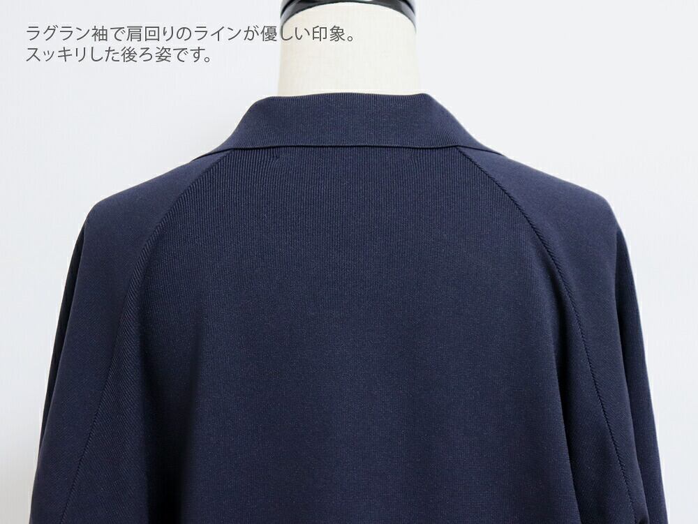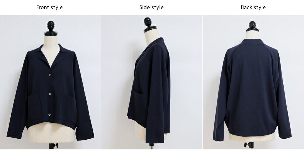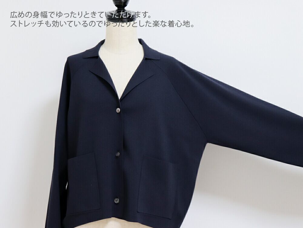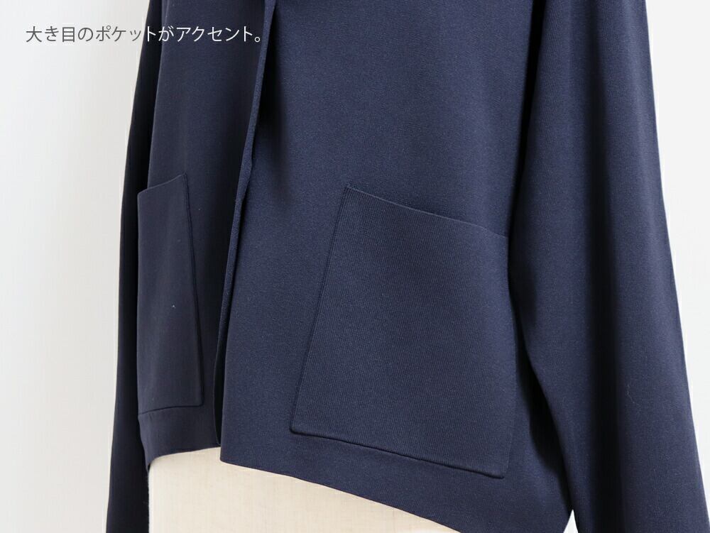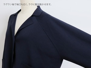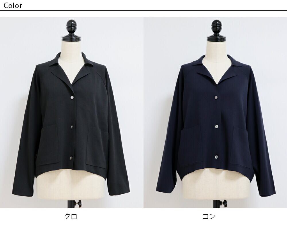 大きめのポケットが印象的なテーラードジャケット。ラグランスリーブ仕様で腕まわりにゆとりがあり、インナーを重ねても動きやすく快適です。身幅も広く、リラックス感のあるシルエット。
