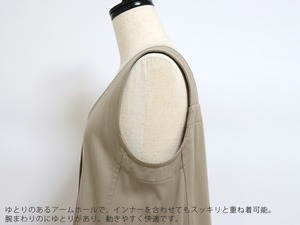 顔まわりをすっきりと見せるVネックデザイン。抜け感があり、女性らしさを引き立てます。