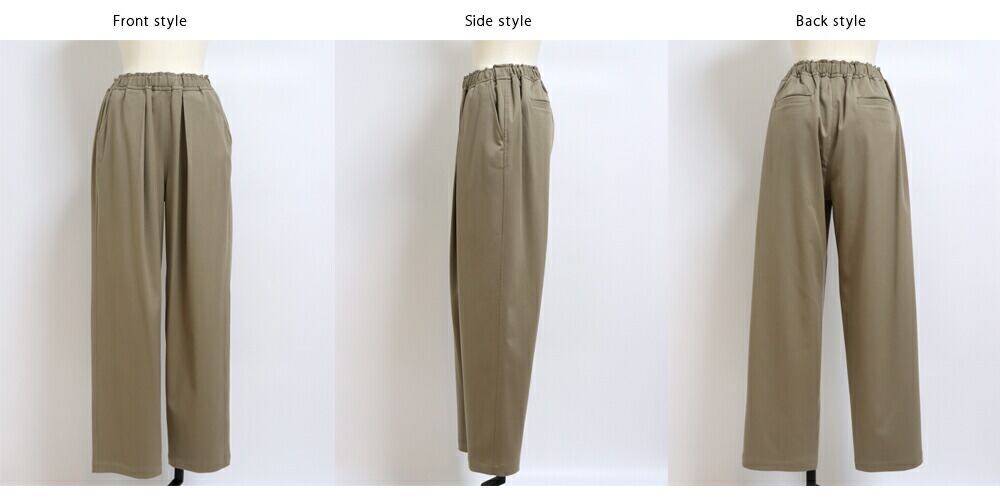 スウェットのようなラクさがありながら、落ち感のあるレーヨン混素材のため履くだけで、きれい見えを叶えてくれまよ♪