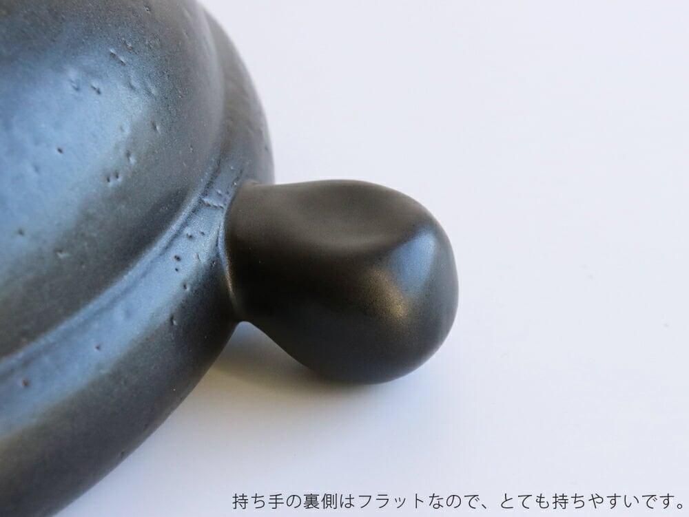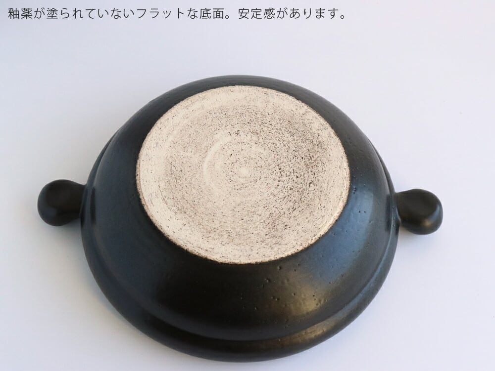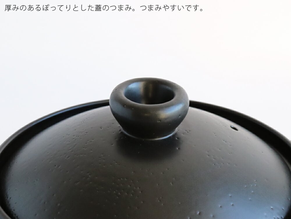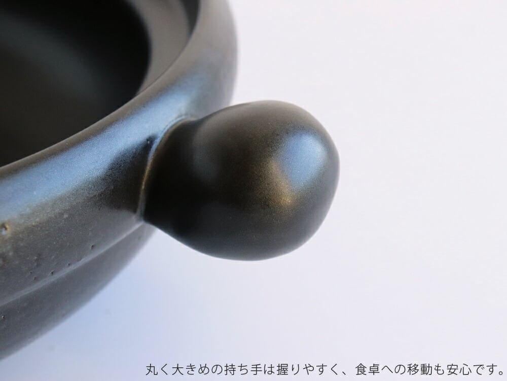 浅型設計のため、黒の土鍋でも圧迫感がなく、毎日の食卓にすっとなじむ佇まい。