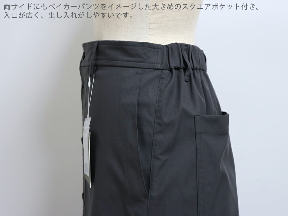 両サイドとヒップには、ベイカーパンツをイメージした大きめのスクエアポケット付き。