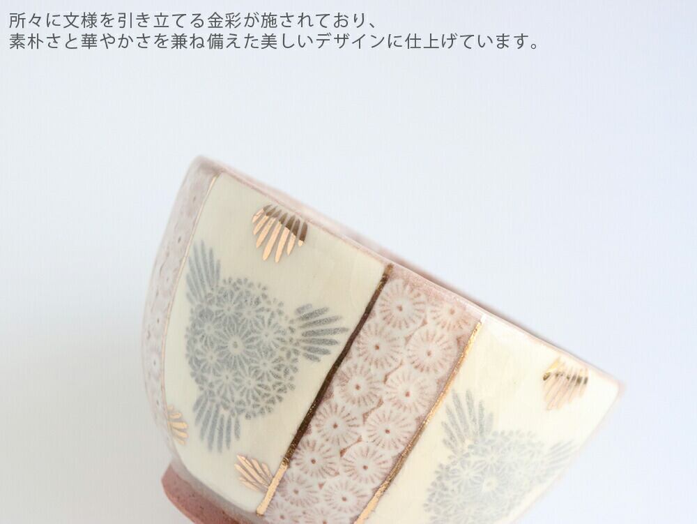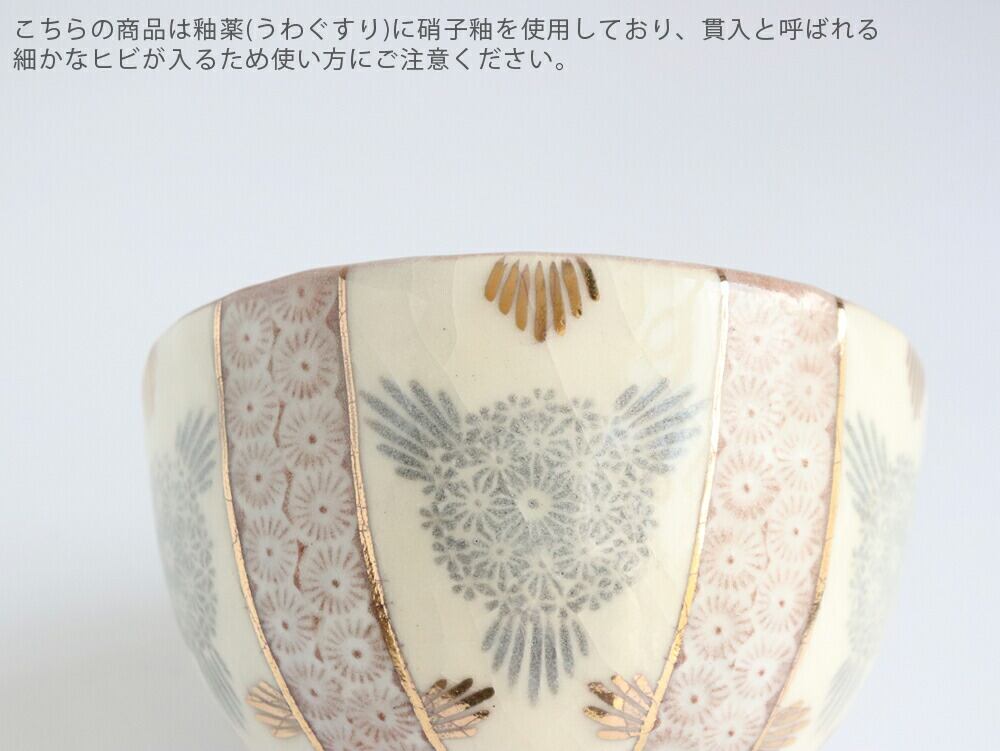 そのシンプルな文様をさらに引き立てる金彩を施すことで、落ち着いた雰囲気と華やかさどちらも兼ね備えた作品に仕上がっています。