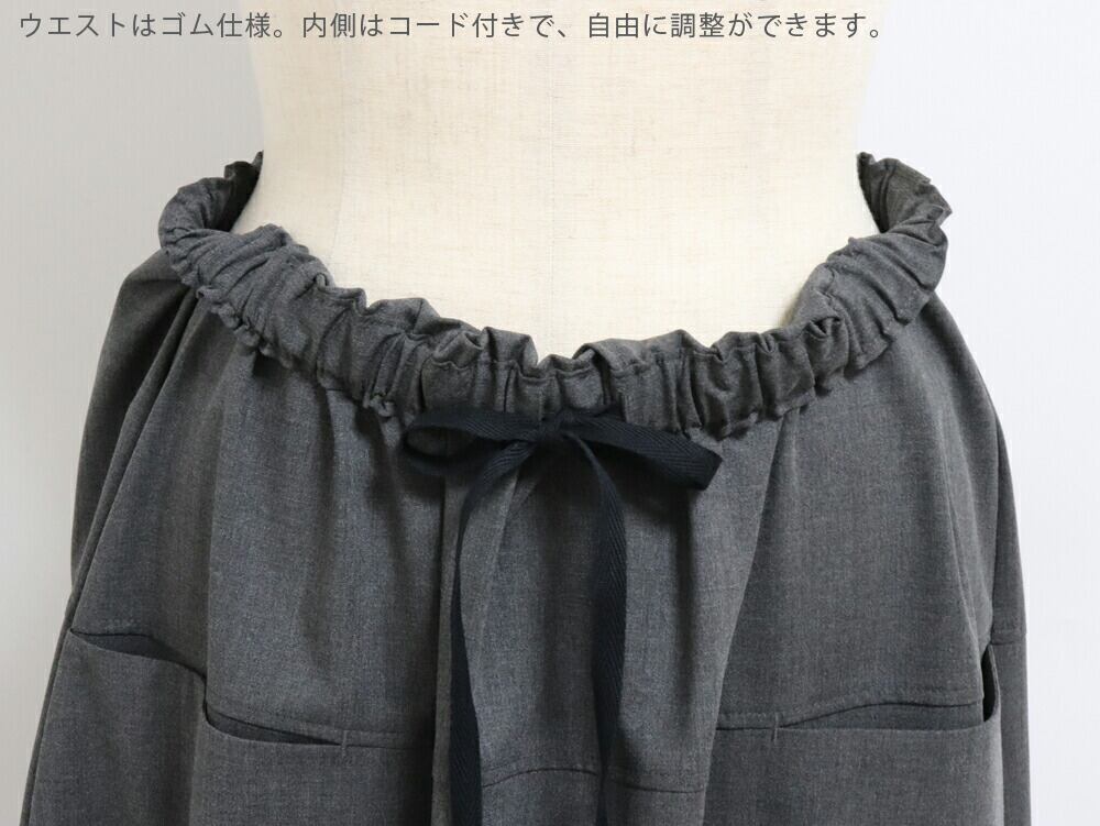 ウエストはゴム仕様にドローコード付きで、お好みのフィット感に調整可能。