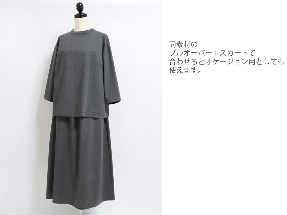 広がりすぎないシルエットで、体のラインを拾いにくく、落ち着いた大人の雰囲気に仕上がります。