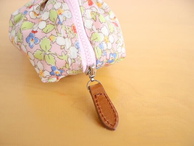 LIBERTYの雰囲気に合わせて、ファスナーつまみには本革を使用。高級感あるすてきな仕上がりですよ♪