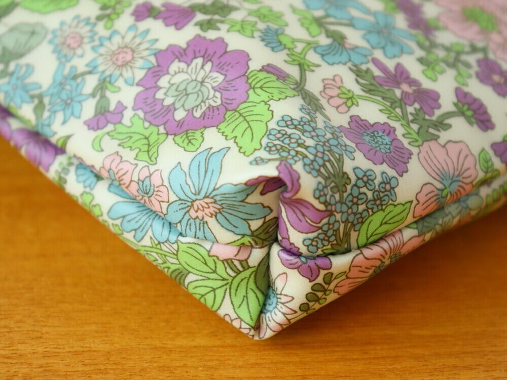 表面はリバティのタナローンを丁寧にPVCコーティングしています。ポーチは汚れやすいので、水や汚れに強いのはポイントが高いですね♪ (内布は綿100%になります。)