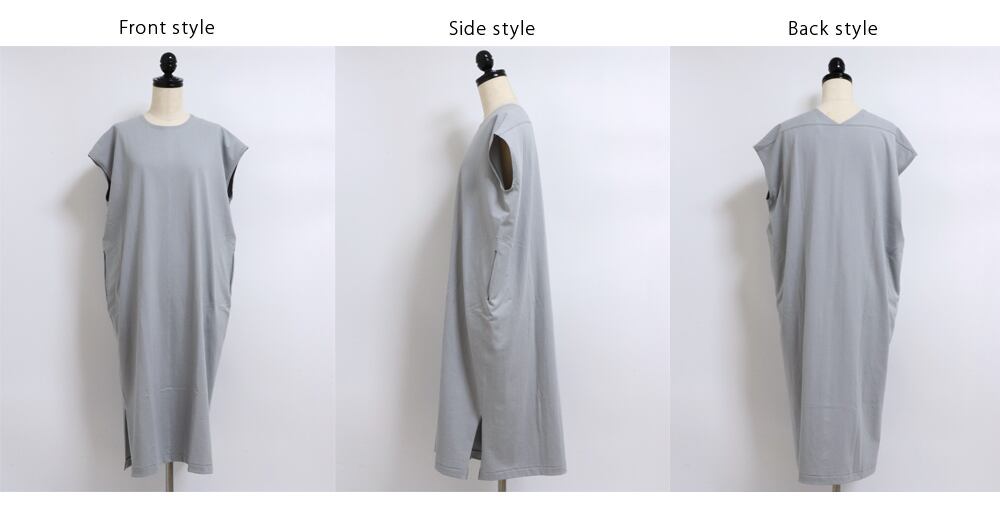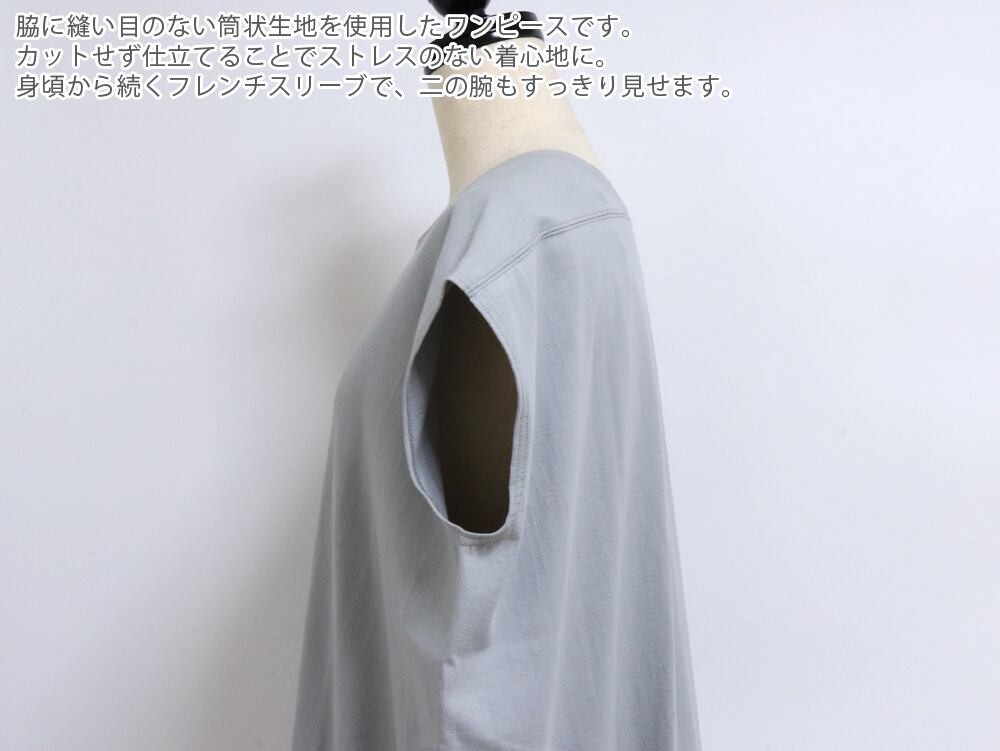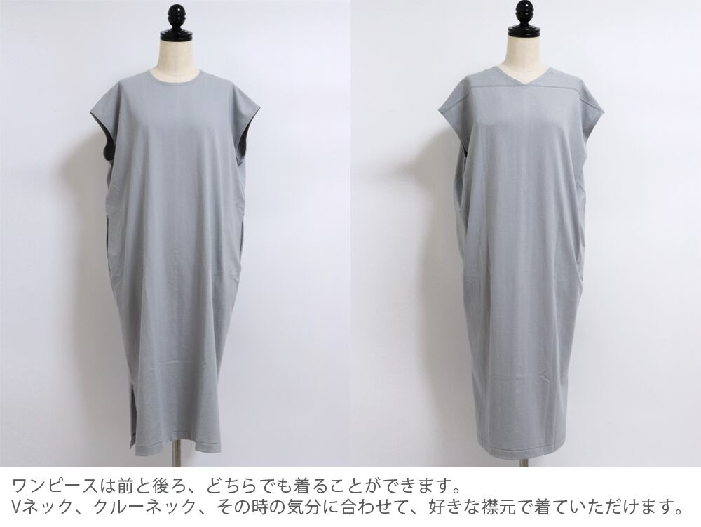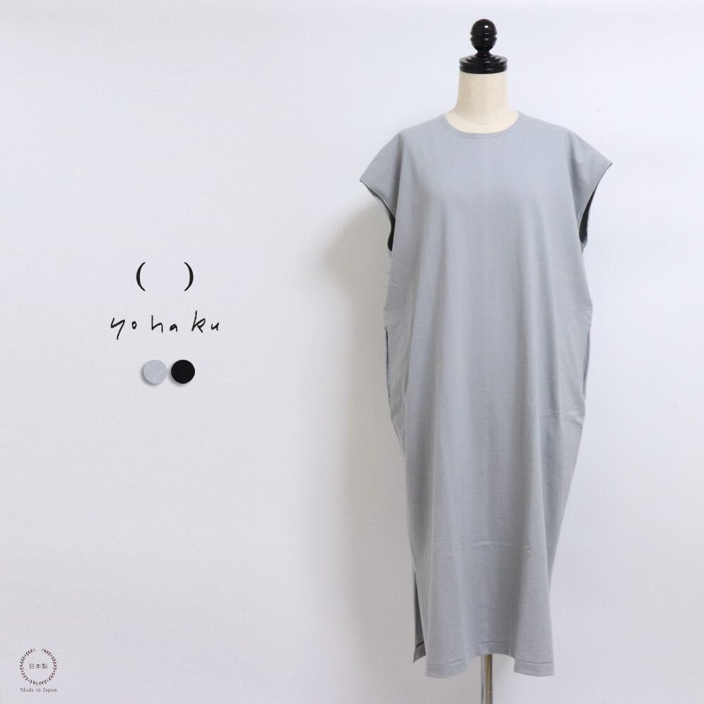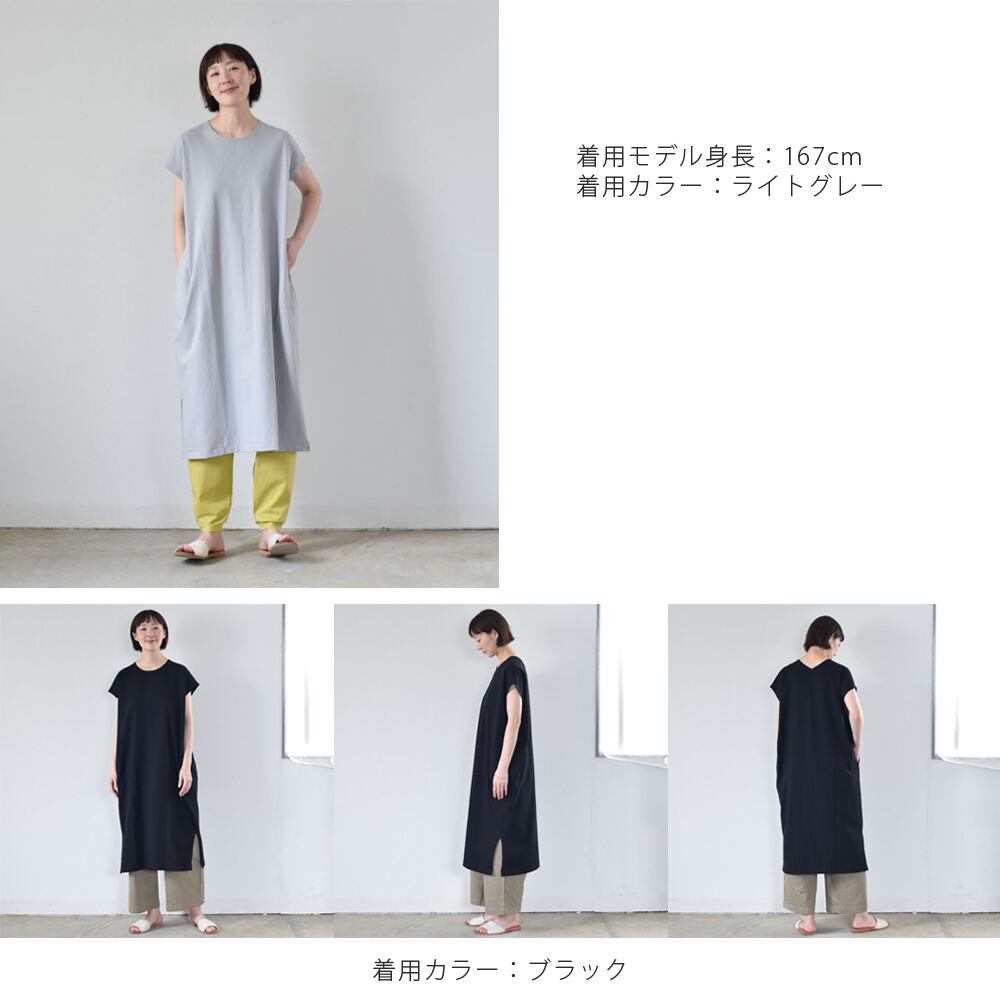 yohaku( 余白 )前後どちらでも使えるデザイン 筒状に編んだTUTU 空紡糸コットン フレンチスリーブワンピース( D0053 )
