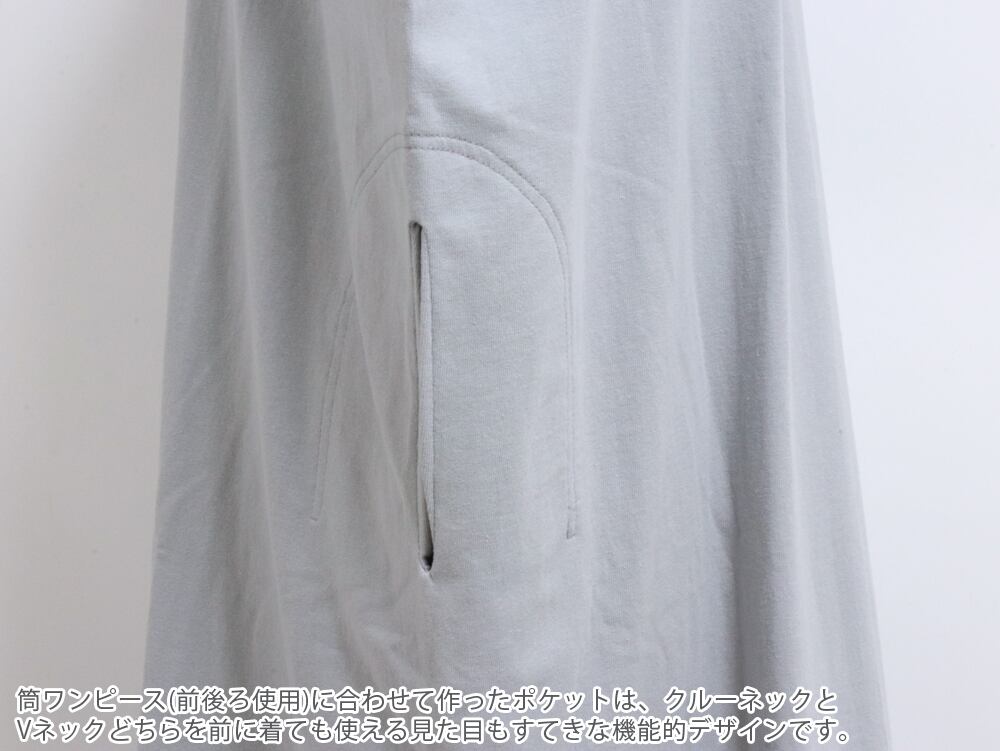 前と後ろどちらでも着ることができる筒状に編んだシンプルワンピース