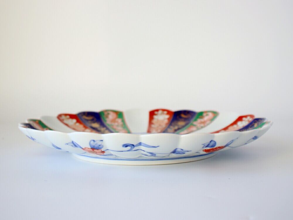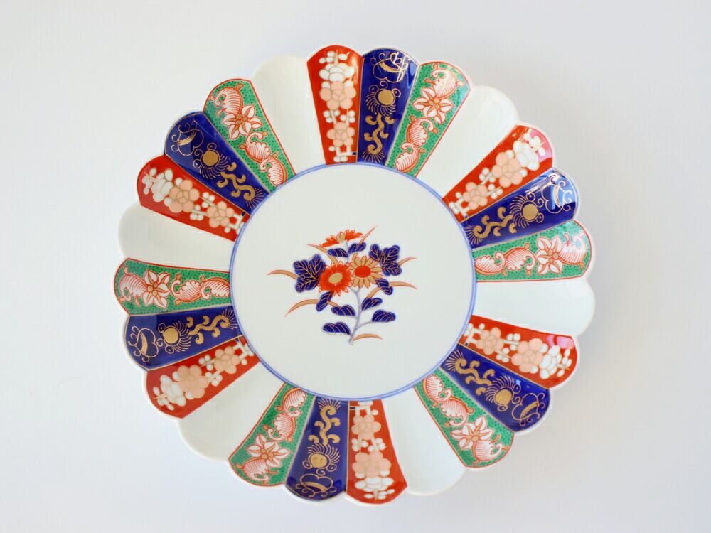 絢爛豪華な「古伊万里様式」に豊かな色彩をほどこし、色絵の上に金彩で豪華な模様があしらわれています。うつわの中央には、高貴の象徴でもある菊模様。縁起の良い古典模様や金の装飾が、お祝いの席にも重宝する華やかなお皿です。8号(24cm)サイズは盛り皿とも呼ばれ、大勢のおもてなしに活躍する、存在感ある一品です。おせち、ちらしずしやてんぷらの盛り合わせなど、和風大皿料理におすすめです。