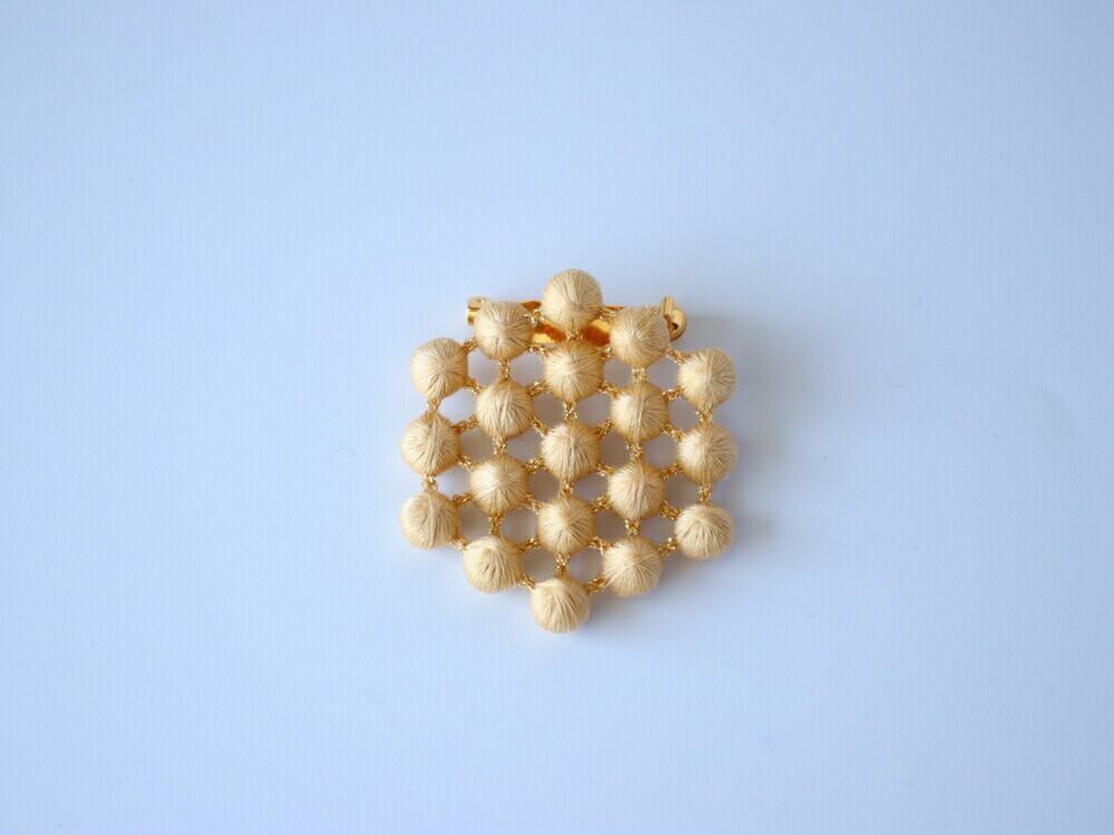 [ネコポスOK] 000 ( トリプル・オゥ ) ハニカムブローチ【 TRIPLE O トリプルオゥ ゴールド シルバー 金 銀 ラメ 刺繍 アクセサリー 軽い 笠盛 日本製 】