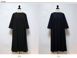 前後で印象のちがうフレアラインワンピースです。フロントはシンプルなフレアライン、後ろ姿はタック入りで裾に向かってふんわりと広がるAラインシルエット。やや肩を落としたドロップショルダーで肩のラインを強調せず、やさしい印象を与えてくれます。袖はシーズンレスで使える短め袖。手首をすっきりと華奢に見せてくれるデザインです。シンプルで上品なワンピースなので、様々なシーンに活躍してくれる1着です♪