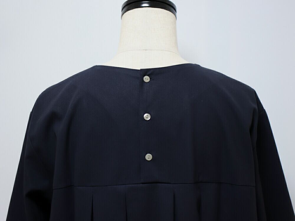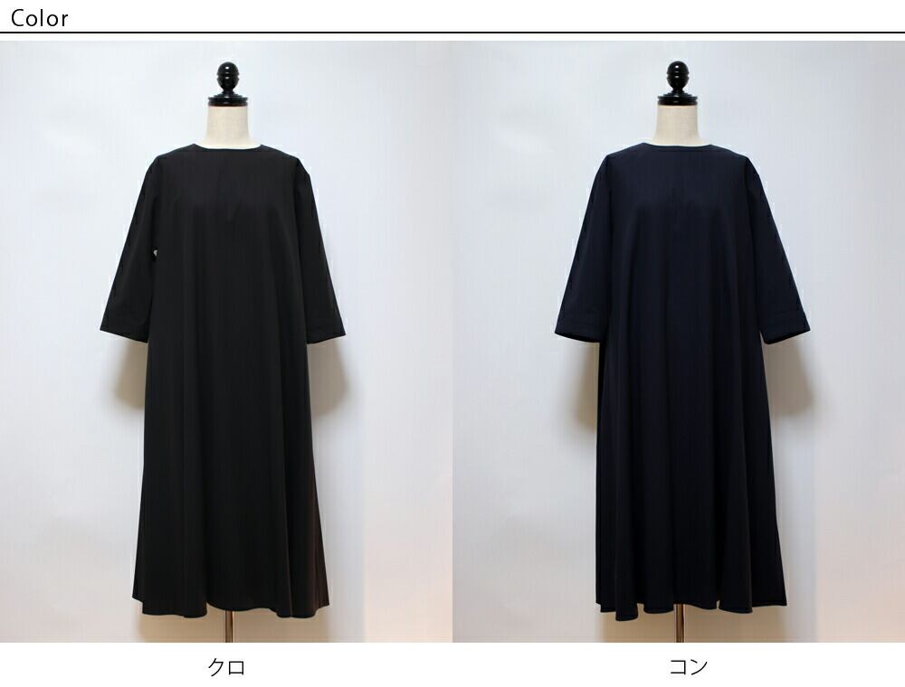 スタンプアンドダイアリー ボタンやタックのバックスタイルがステキな ノーカラー フレアタックワンピース【 日本製 洗える 送料無料 40代 50代 春 夏 秋 冬 きれいめ おしゃれ 体型カバー 7分袖 ドロップショルダー コン クロ STAMP AND DIARY 】