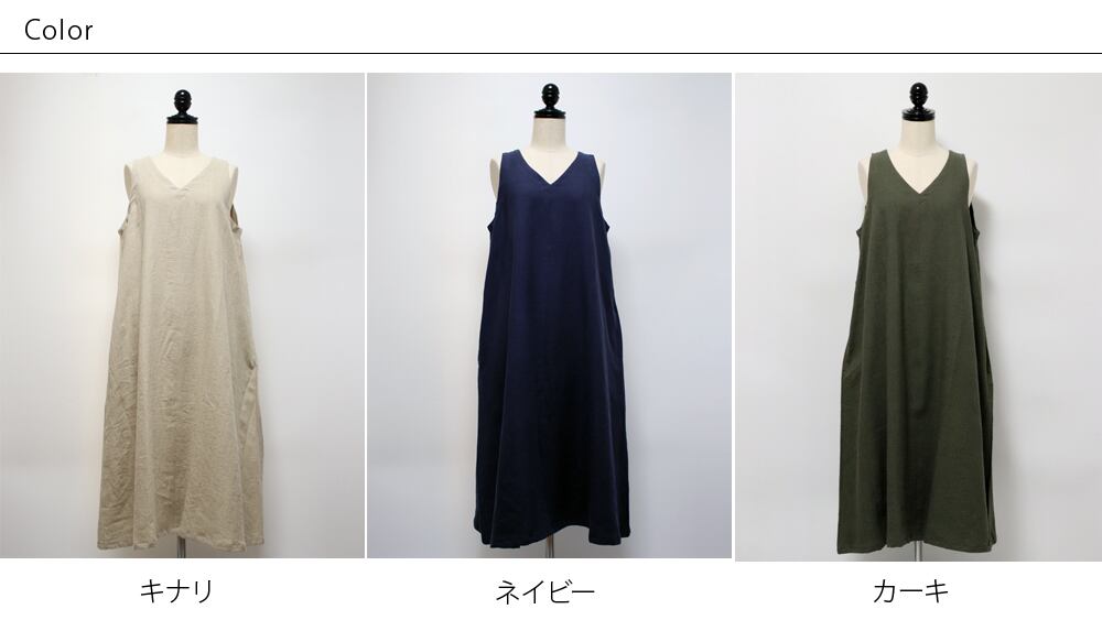 yohaku(余白) リネンノースリーブフレアワンピース【 日本製 送料無料 40代 春 夏 秋 カジュアル シンプル ゆったり しっかり 丈夫 Vネック ネイビー キナリ 】