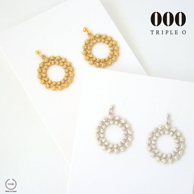 [ネコポスOK] 000 ( トリプル・オゥ ) ドイリー ピアス / イヤリング【 TRIPLE O トリプルオゥ Doily ゴールド シルバー ラメ 金 銀 選べる 糸 糸玉 刺繍 アクセサリー 軽い 笠盛 日本製 】