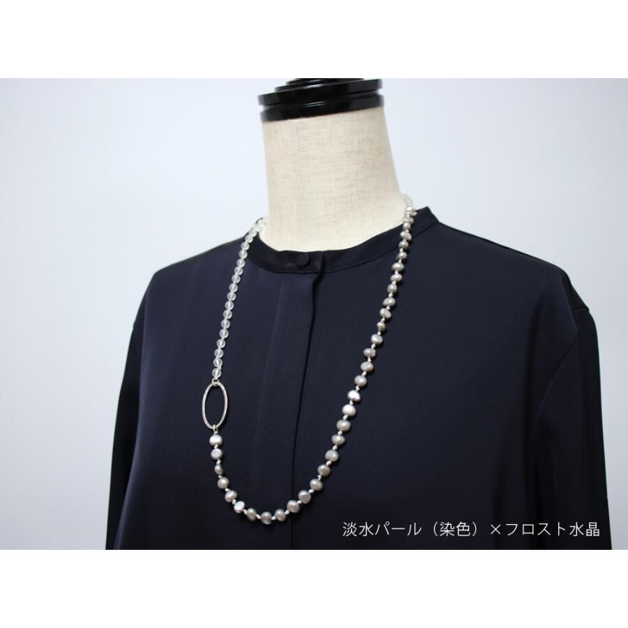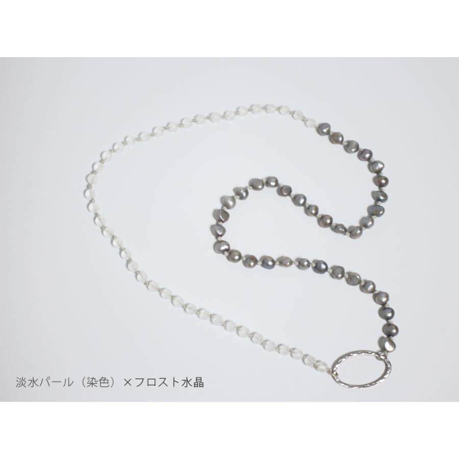 ◇ 素材 淡水パール(染色)、フロスト水晶、合金、ナイロン